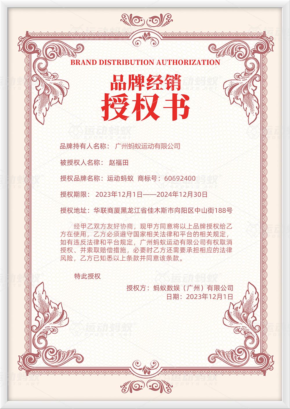 品牌经销授权书