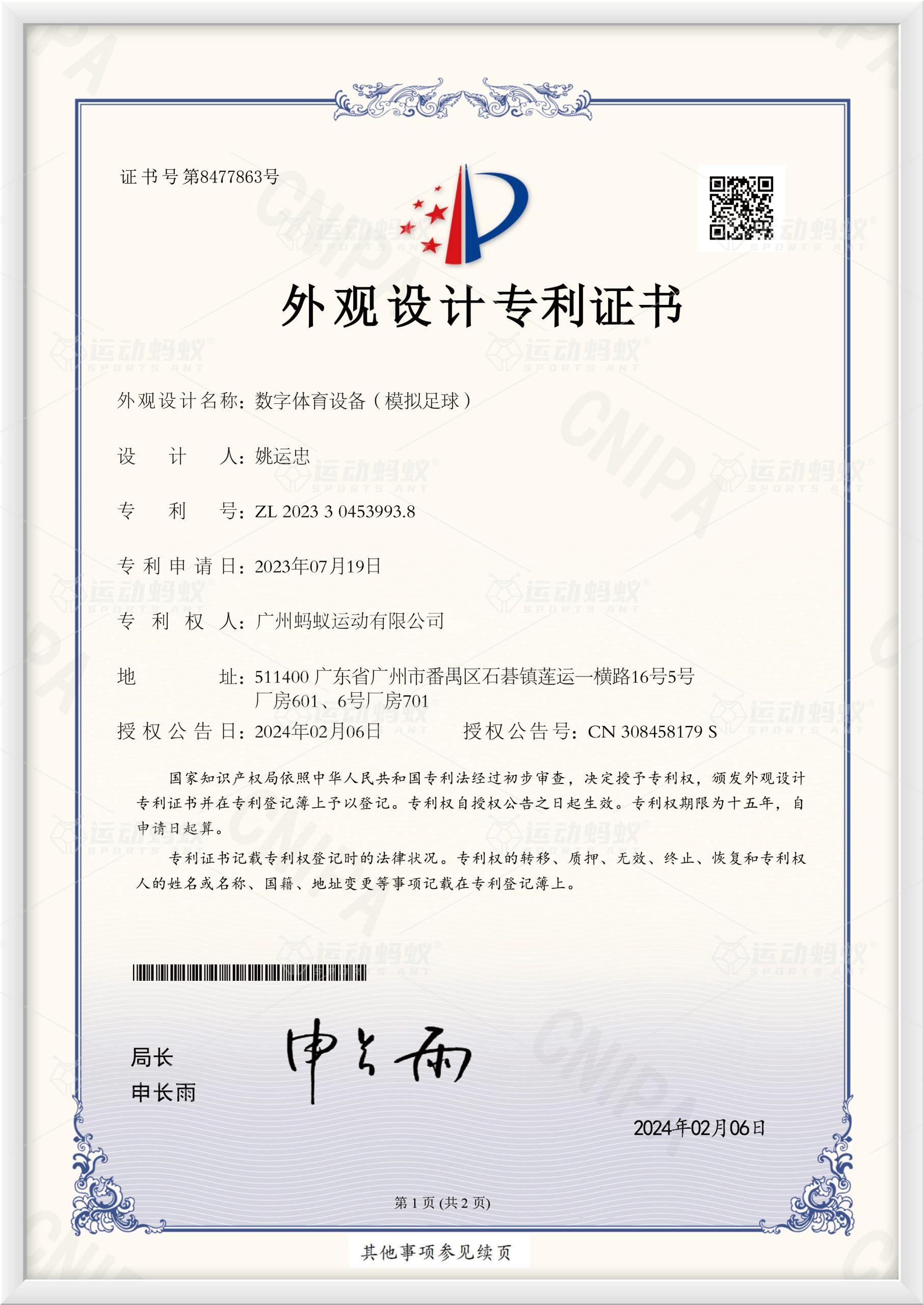 外观设计专利证书