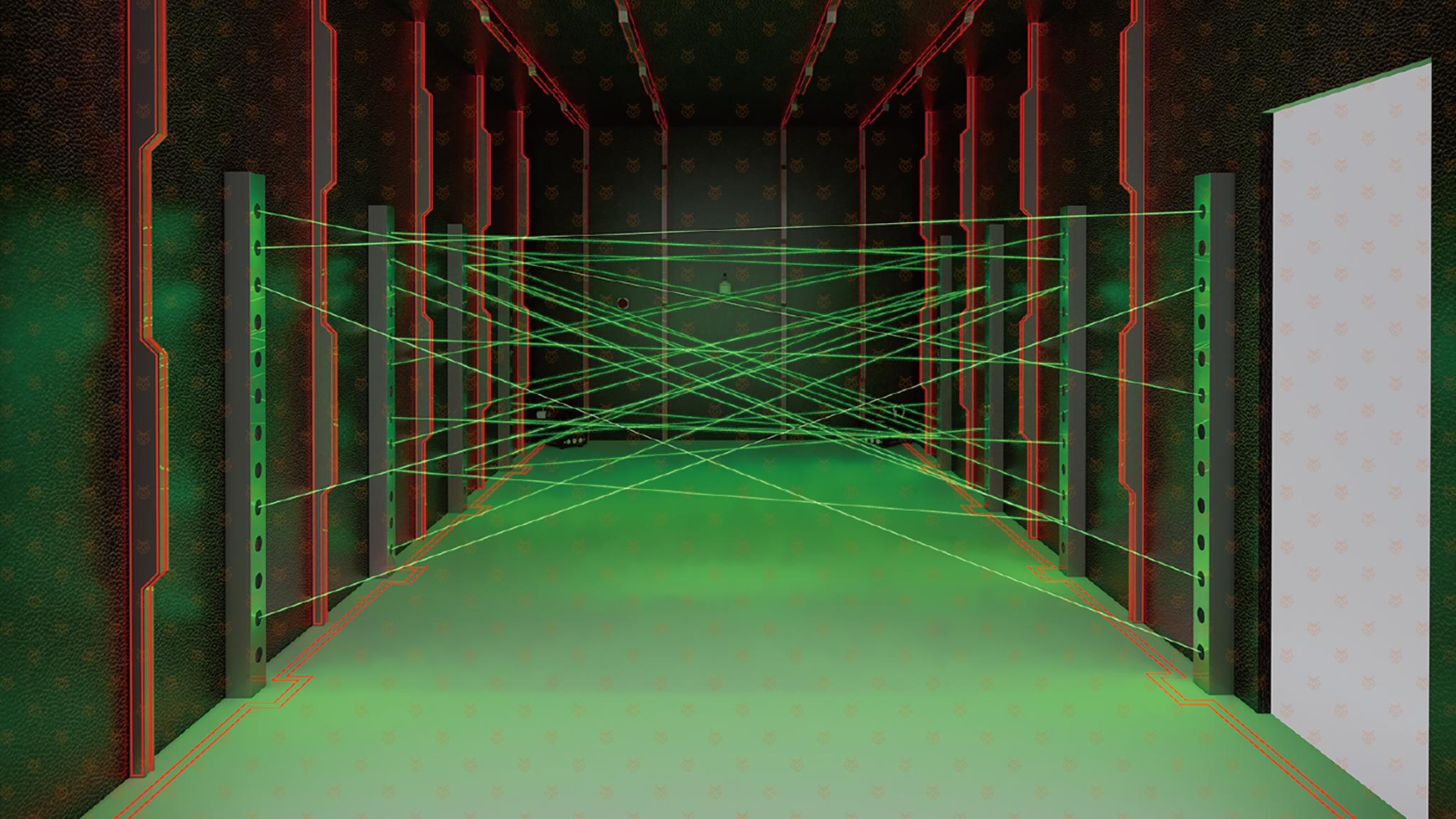 玩家需要在规定的时间内穿越激光光线矩阵,去到对面墙按灭当前房间内亮起的那个按键灯,几个来回(模式不同所需来回次数就不同)之后,即可挑战成功。