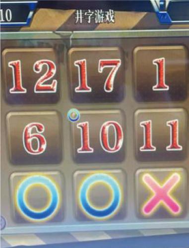 3、井字游戏:游戏开始时系统会给每个格子随机一个目标号码,玩家1用○表示,玩家2用×表示。当玩家在同一个目标号码上击中三次会如图19数字所示三个记号,第四次先击中的玩家将号码关闭。最先将三个号码连成一条线的玩家获胜。