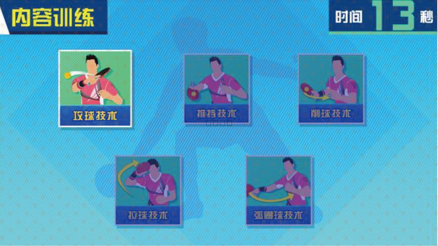 进入训练界面后,左侧立即呈现乒乓球的标准姿势,训练过程中,3D角色将全程指导动作,同时左右两侧设有球员示范,供玩家参考模仿。
