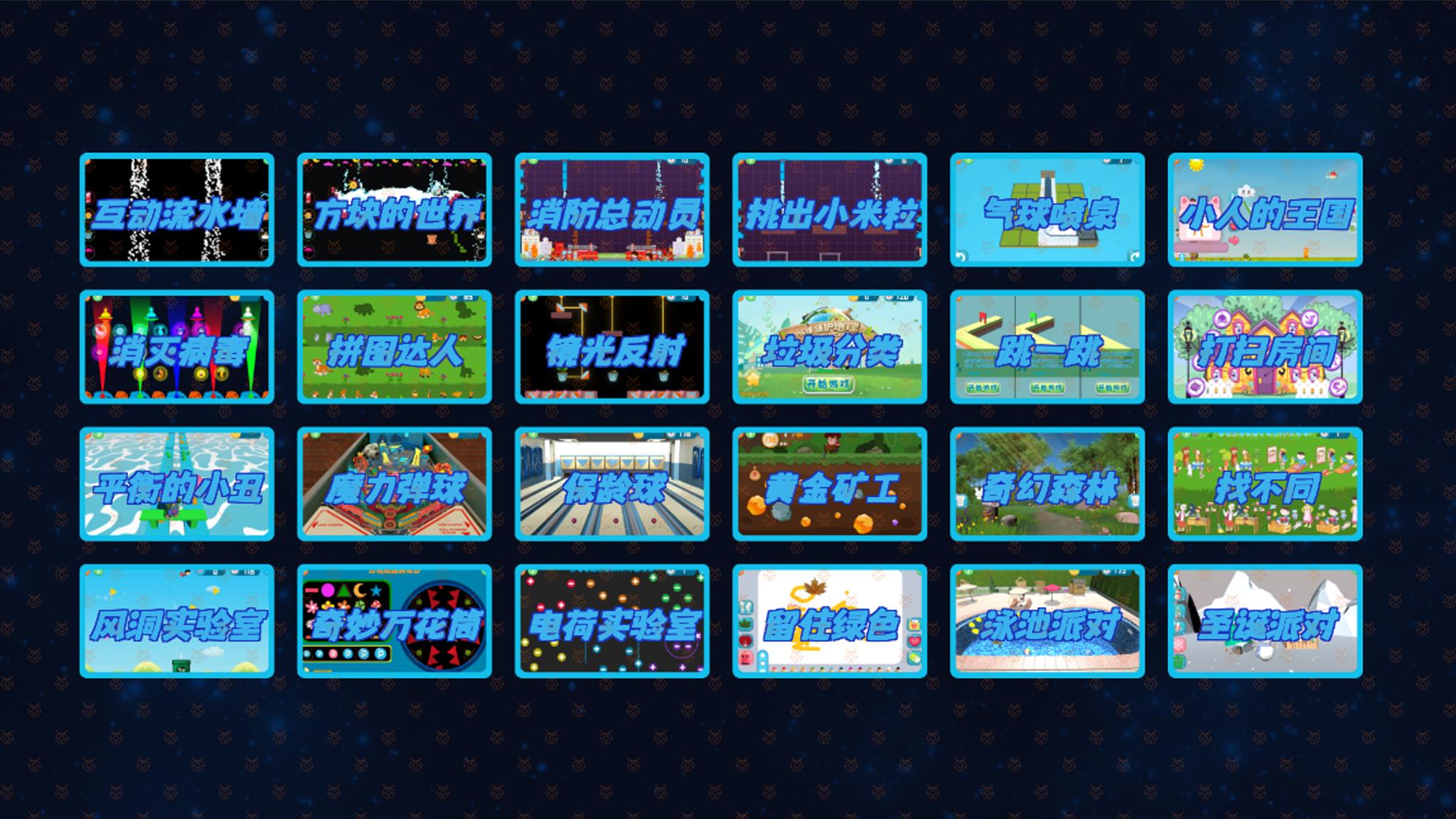 墙面实验室提供了总共24个不同的主题。启动程序后,用户可以选择自己感兴趣的主题,随即开始游戏。