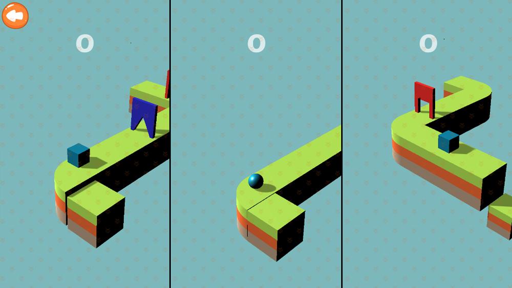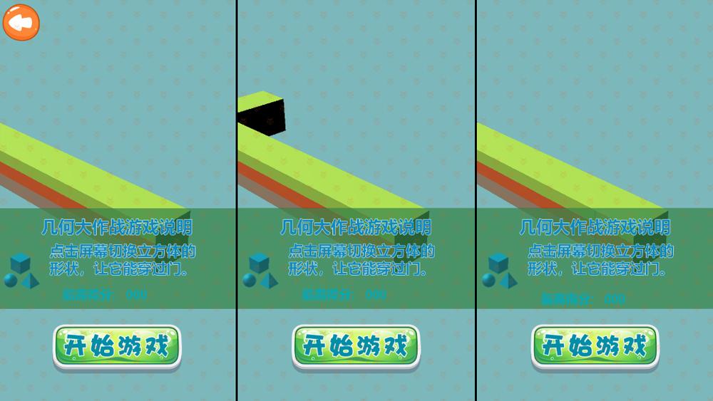 支持3个人同时玩,小朋友要根据门的形状,点击屏幕改变立方体的形状,让它在正方体,球体和三棱锥直接切换,让它跟门的形状一致即可得分。让小朋友们了解几何立方体的基础知识。