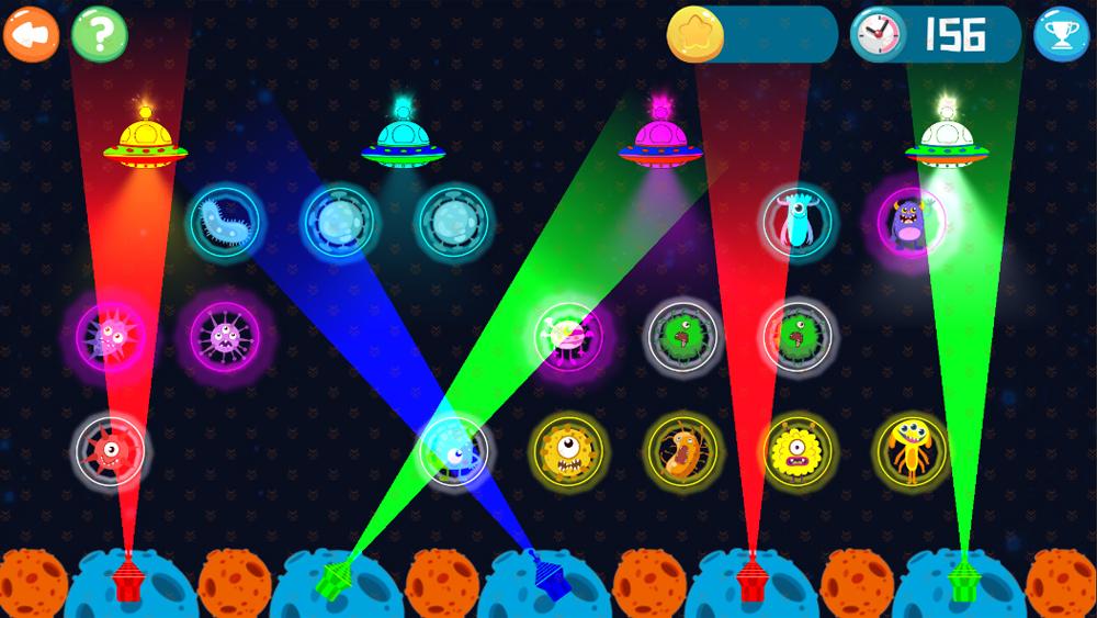 红绿蓝)组合成病毒光圈对应的颜色,就可以把该病毒送回同色的太空飞船中,保护我们美丽的家园。