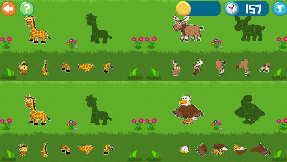 根据左边的提示,将动物分开的身体拼完整,成功后切换一下个动物,在这个过程中认识各种小动物。