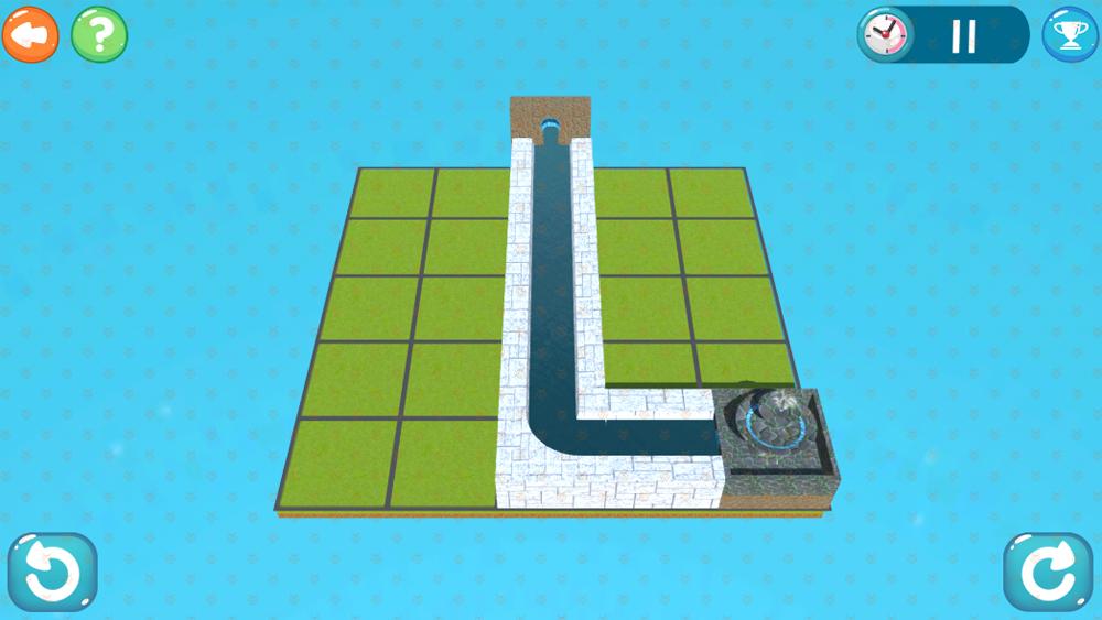 小朋友根据现有的水槽,将喷泉的水引导到喷泉处,使喷泉喷水。在游戏的过程中,锻炼小盆友的3D几何能力。
