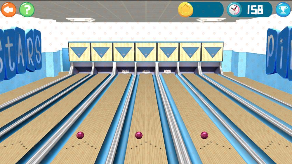 小朋友通过点击左右晃动的保龄球,保龄球会沿着滑到向前滚动,击打保龄球瓶。根据不同的滚动角度,击倒不等数量的保龄球瓶。让小朋友感受运动的魅力。