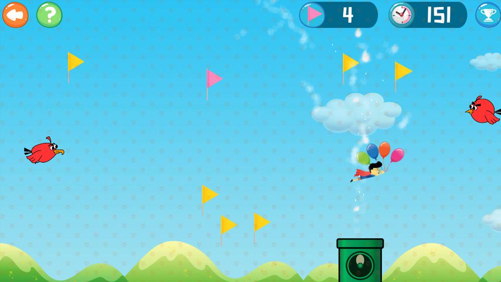 孩子们的目标是控制气球小人在风洞中尽可能长时间地浮起来,并收集尽可能多的空中彩旗。