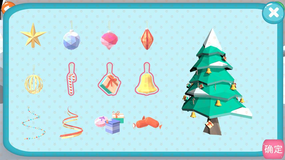 圣诞树装饰:游戏中提供各种各样的圣诞树装饰品,例如彩灯、彩球、星星、礼物盒等。孩子们可以选择自己喜欢的装饰品,并将它们放置在圣诞树的不同部位。他们可以选择不同颜色、形状和大小的装饰品,以及调整它们的位置,创造出独特的装饰效果。