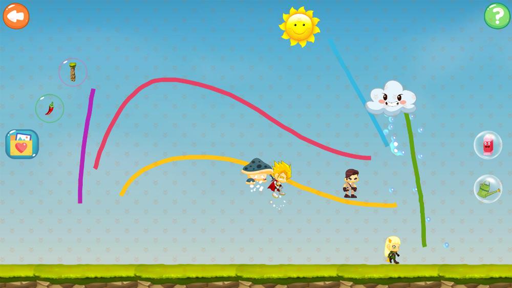 你可以亲手为他们绘制房间。在他们不停奔跑的时候为他们开辟道路。遇到山丘档住了去路怎么办,送给他们一把梯子攀过山丘,或者放置一个风洞,让他们飞跃山丘。火苗会烧毁它碰到的一切物体,不用害怕,你可以引来水流灭火。还可以为他们种一些瓜果蔬菜,给它们浇浇水,让它们发芽开花结果。野猪是破坏大王,会毁坏你辛苦创建的一切,不用当心,我们可以一起消灭它。当然还有更多有趣的玩法等你去发现,让小人们过上幸福的生活。