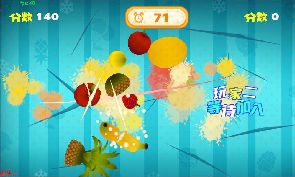 1.在规定时间内尽量切多更多水果获得更多分数;