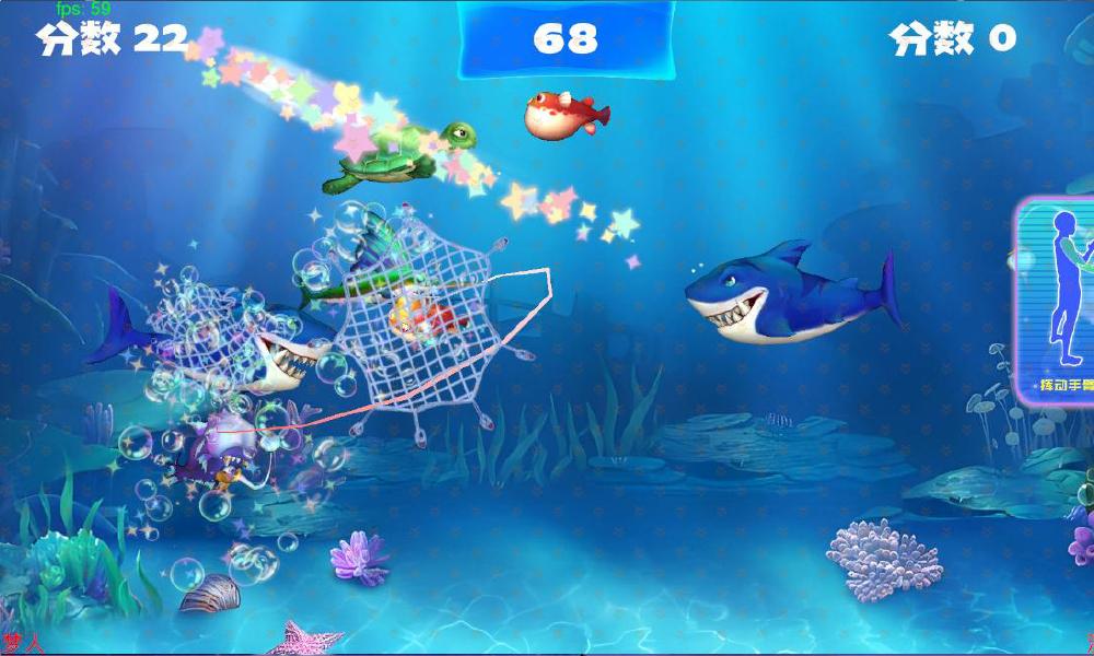 3.在规定时间内捕获不同的鱼获得不同的分数。