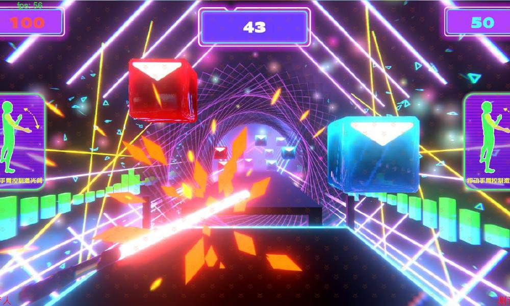 1.用激光剑对方块进行打击,颜色需要对应,从而获得分数;