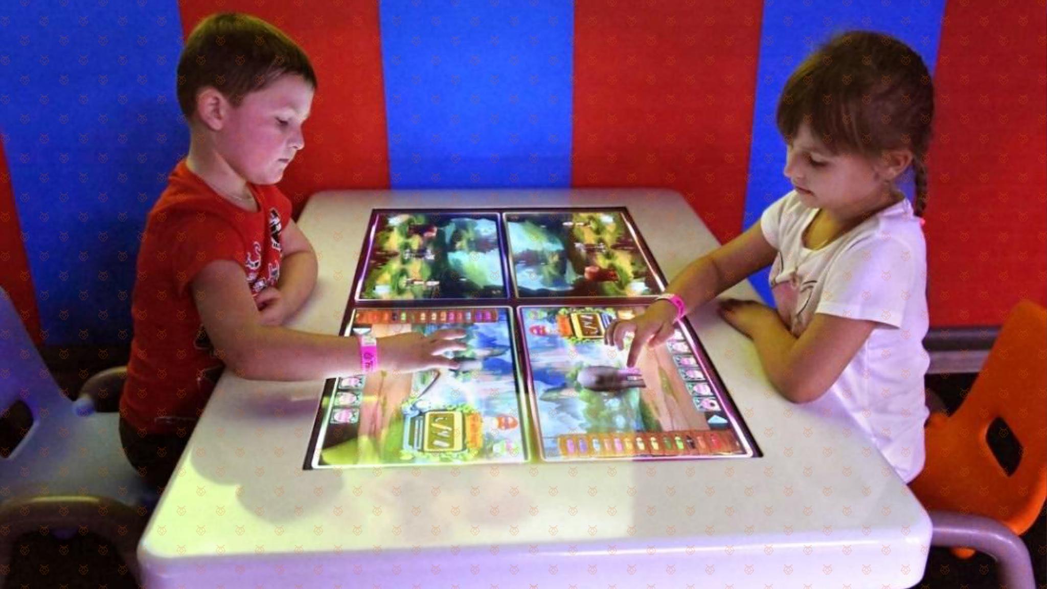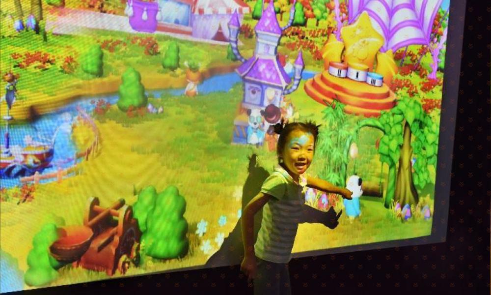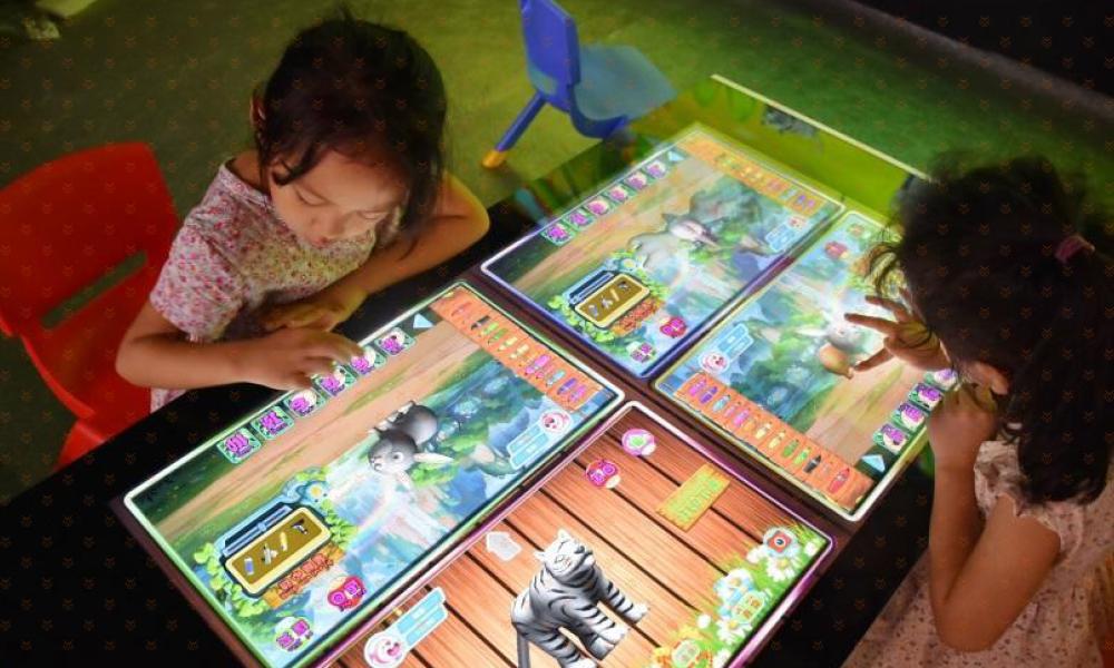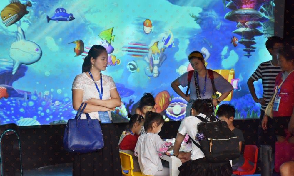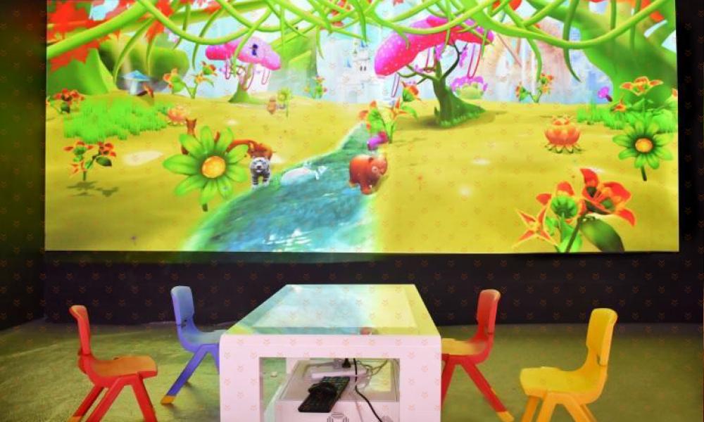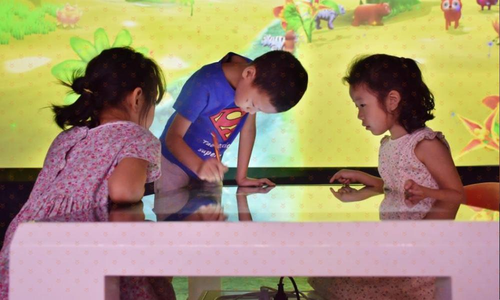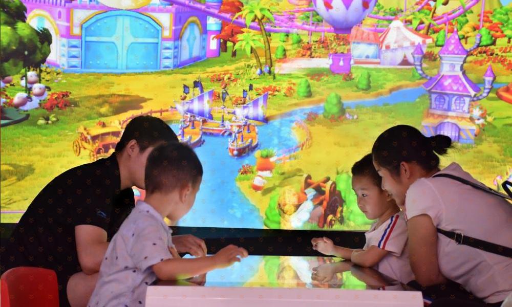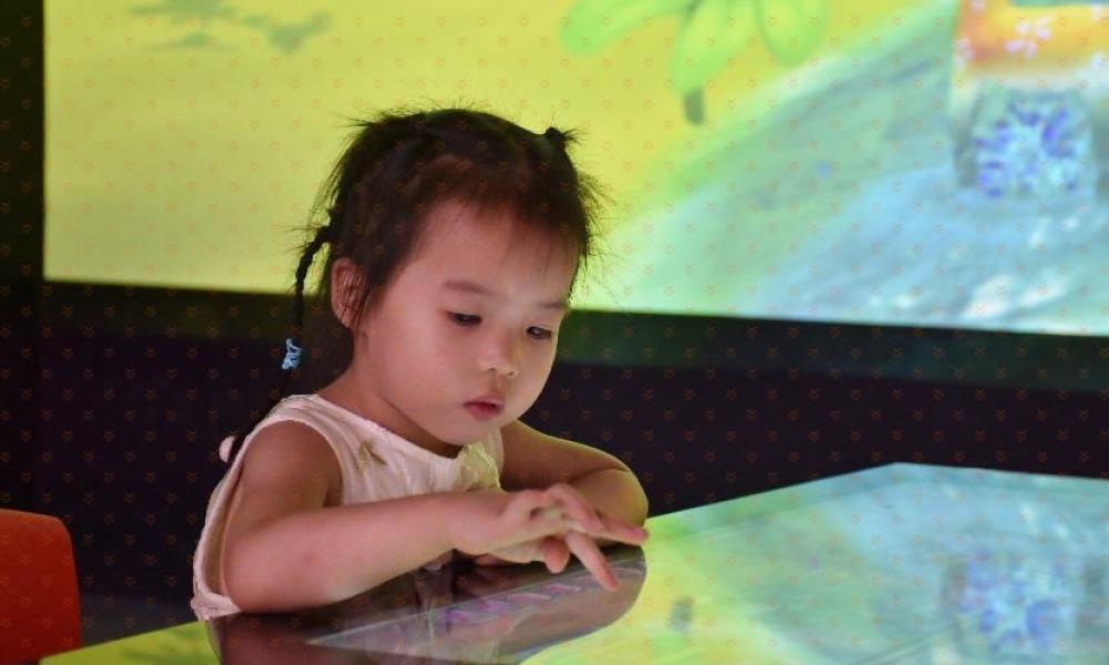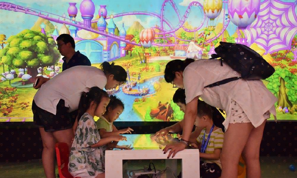 三、神奇的触摸桌-创造能够变“活”的专属萌宠:触摸桌触感灵敏,伸出手指就可以尽情涂鸦,而且触摸桌与巨幅画面无缝连接,画好的小动物可以出现在场景里,形成专属你创造的独一无二的萌宠宝贝。