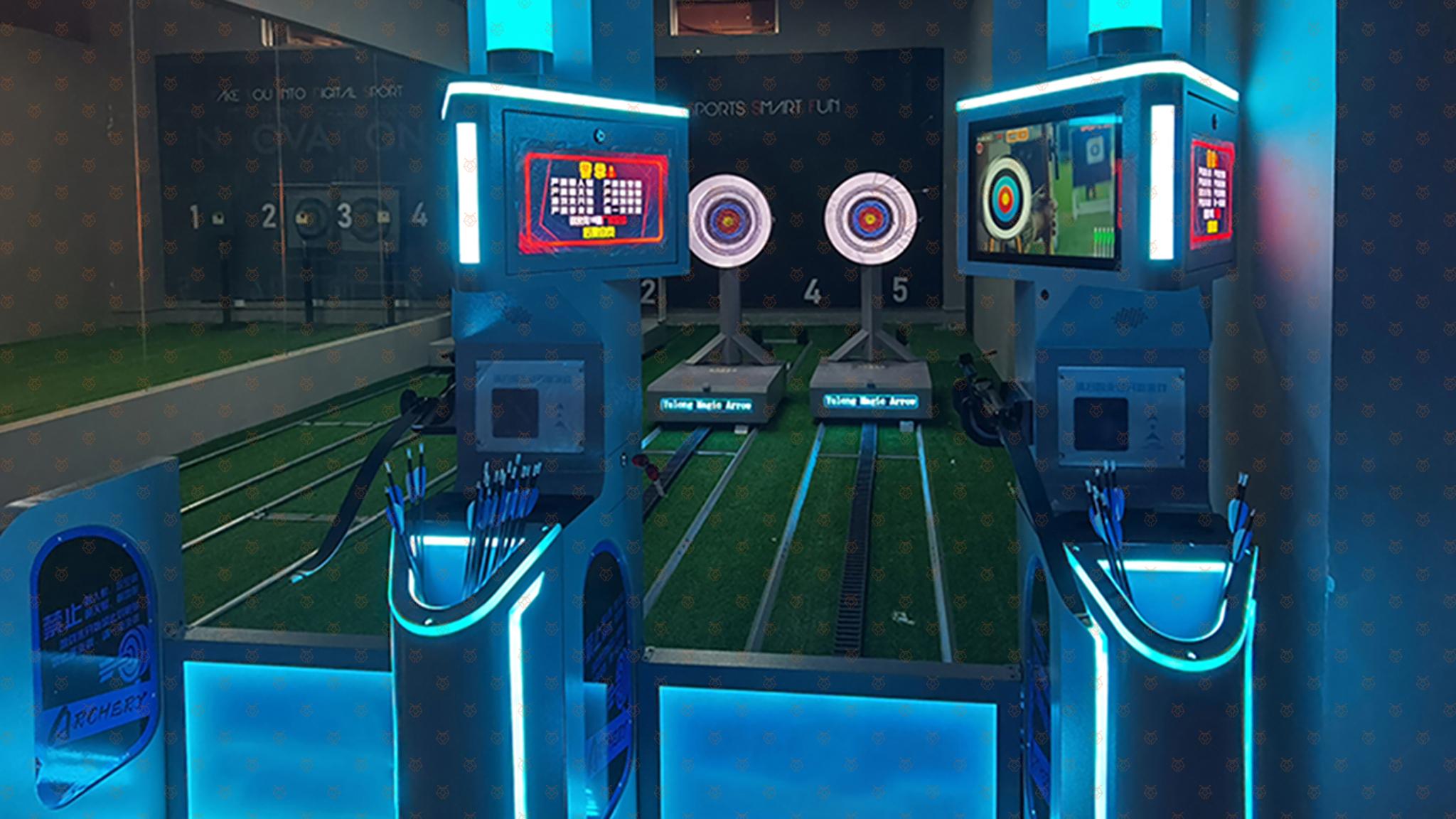 3、显示器距离射箭前格挡平行直线距离1.8米。